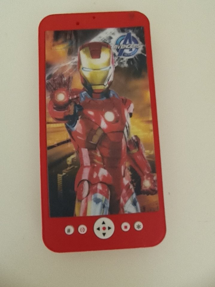 Renkli kırmızı Avengers temalı eğitim oyuncağı, öğrenme için etkileşimli düğmelere sahiptir.