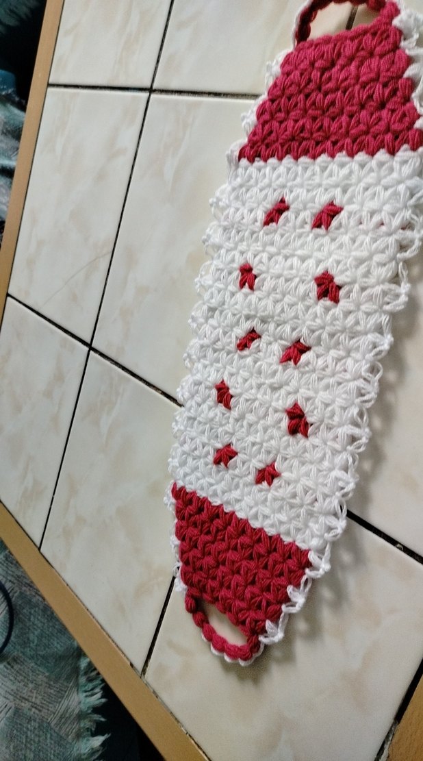 Kırmızı ve beyaz renklerde, dokulu desenli, asma halkalı renkli banyo süngeri. Yumuşak ve nazik peeling için uygundur.