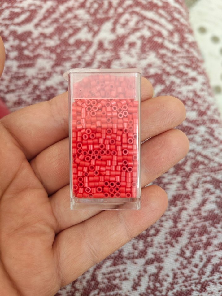 Küçük şeffaf kutuda kırmızıboncukları, 2mm