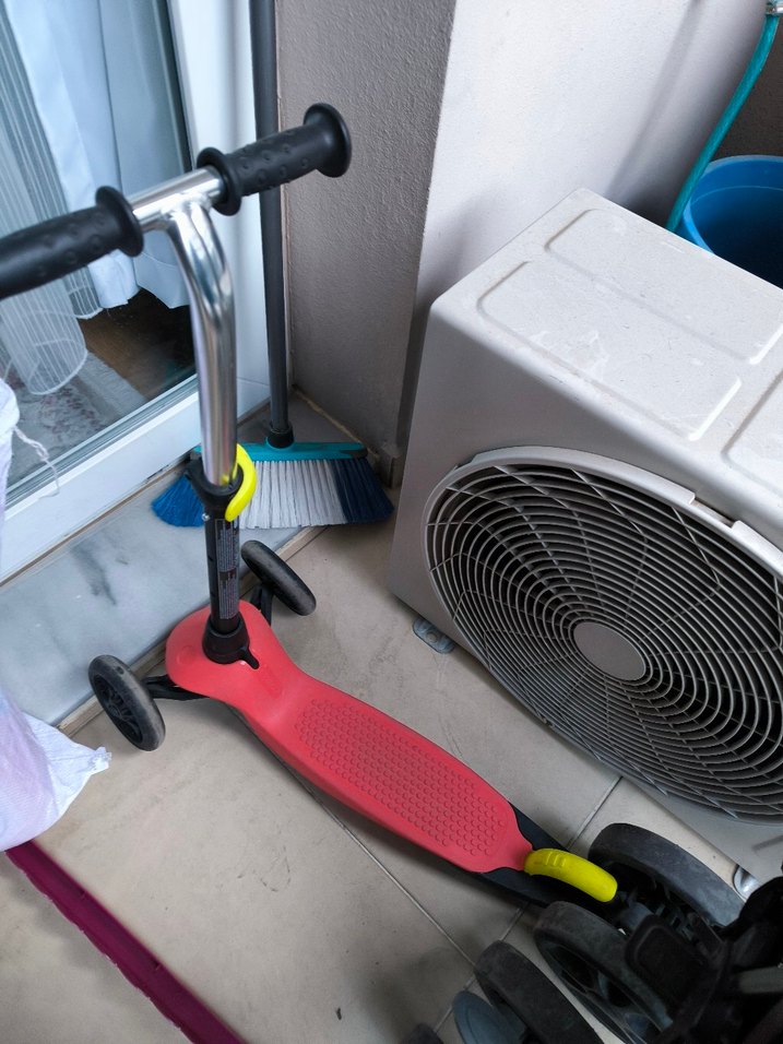 Renkli kırmızı çocuk scooterı, sağlam tutma sapı ve geniş ayaklığı ile dengeli sürüş sağlar. Üç tekerlekli yapısı kolay manevra imkanı sunar.