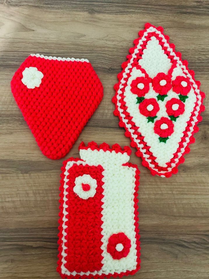 Çiçek desenli kırmızı beyaz el örgüsü renkli banyo liflerleri, nazik temizlik için uygundur.