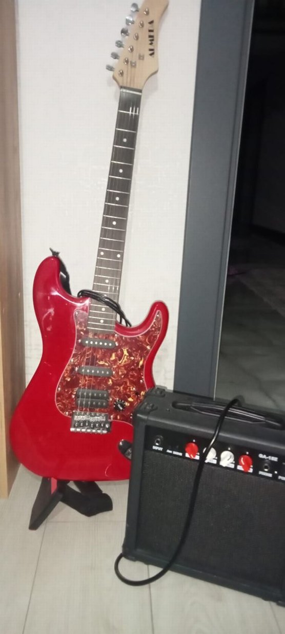Renkli Kırmızı Elektro Gitar ve Amfi