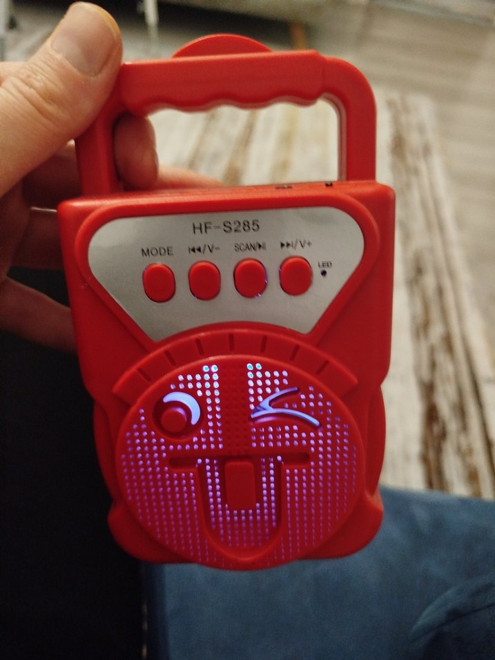 HF-S285 model kırmızı Bluetooth hoparlör, renkli LED ışıklar ve kullanımı kolay mod ile ses düğmelerine sahiptir.