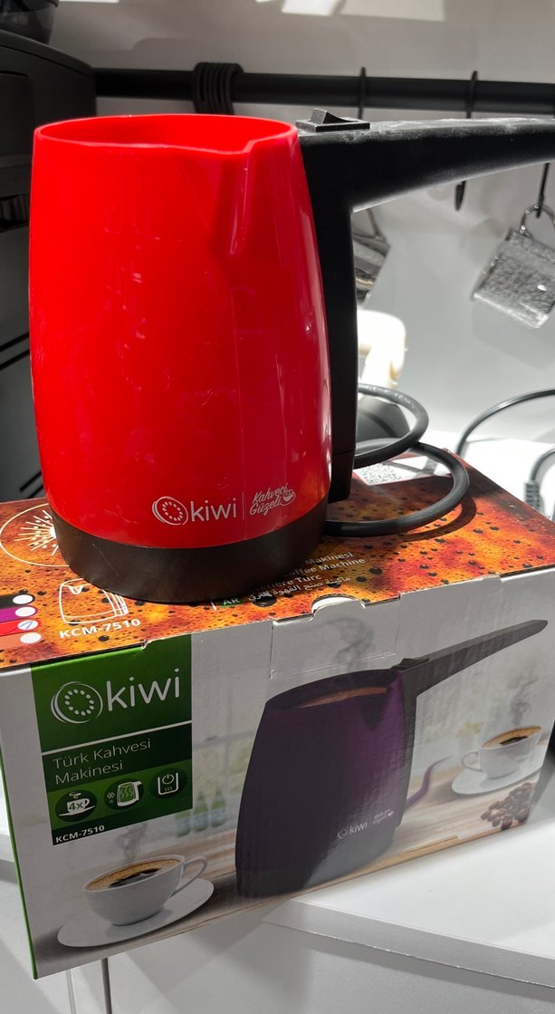 Renkli kırmızı Kiwi Türk kahvesi makinesi, kompakt tasarımı ve kolay kullanımı ile zengin kahve deneyimi sunar. ☕