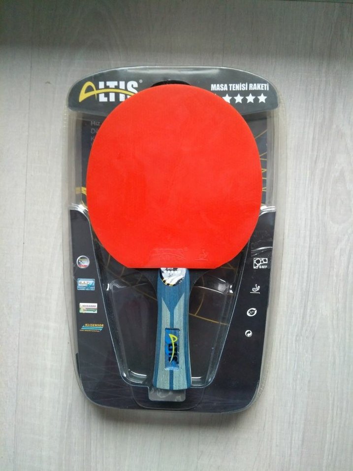 ALTIS mt-500 5 yıldız masa tenisi raketi, pürüzsüz yüzey ve rahat tutuş sağlar. Birkaç kez kullanıldı. Gayet temiz bir raket. Hem hobi hem rekabet için uygundur.