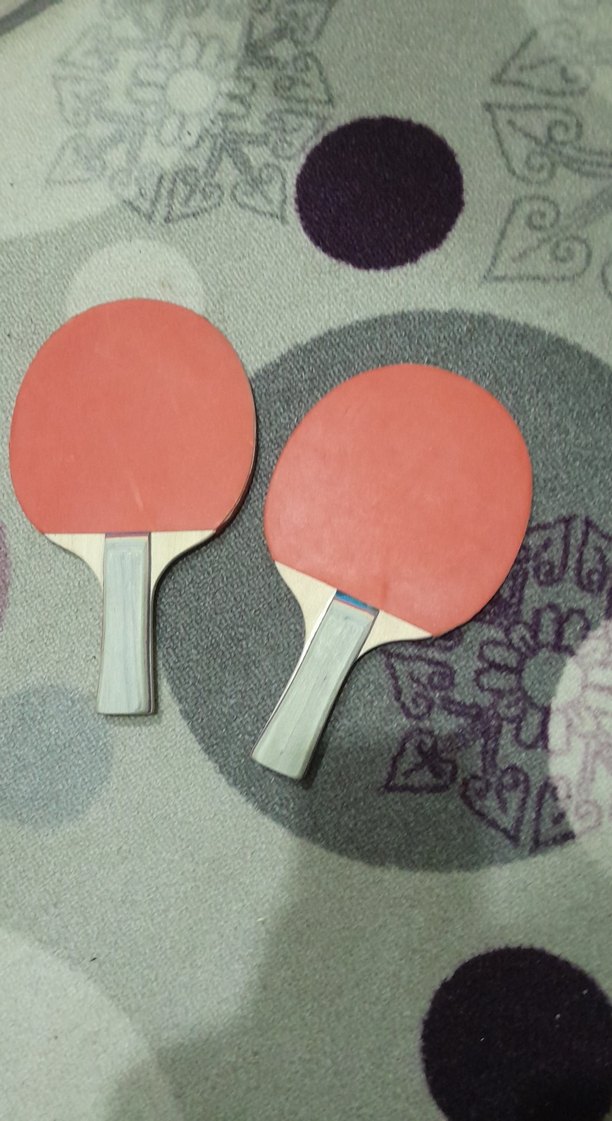 İki adet renkli kırmızı masa tenisi raketi, ahşap saplı, günlük oyun için uygundur.