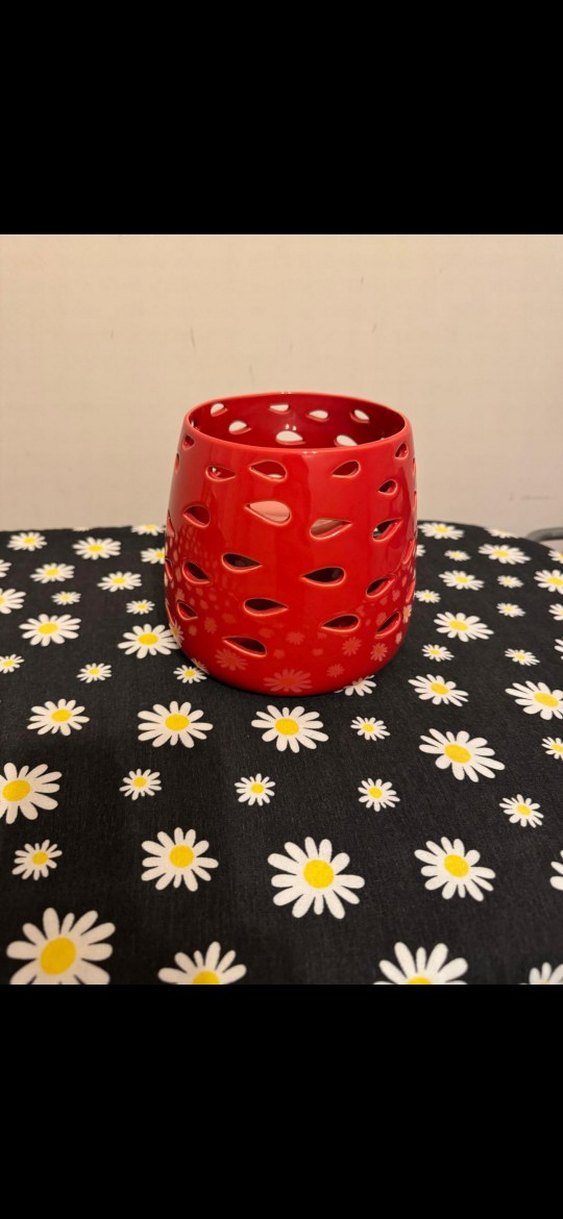 Sıcak bir atmosfer yaratmak için desenli delikli renkli kırmızı mumluk. ️