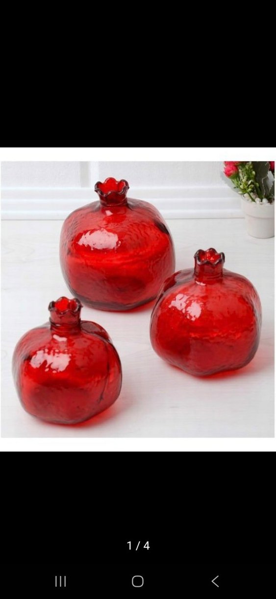 Parlak yüzeyli, renkli kırmızı nar figürlerinden oluşan dekoratif set. Altında Hafif Soyulma vardır Ancak Kullanıma engel değildir