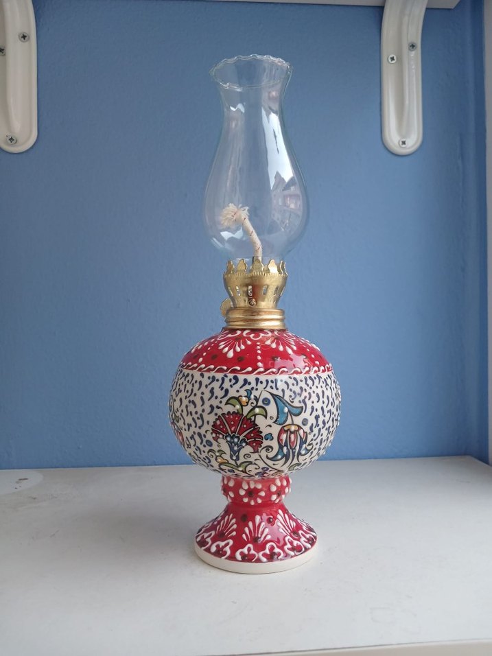 Tamamibel boyama Kırık atık yok lale karanfil desenli kabartmalı model çalışır durumda fitili üzerinde sıfır ürünün camlı yüksekliği 27cmm camsız 18cm diğer renk ve desenler için sayfama bakınız marka temsili