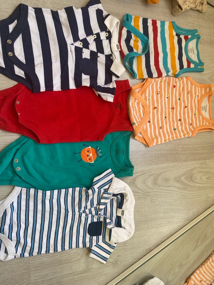 Renkli, kısa kollu bebek bodyleri, yuvarlak yakalı ve düğmeli tasarımlarla yumuşak kumaştan üretilmiştir. Sokak stili için uygundur.
