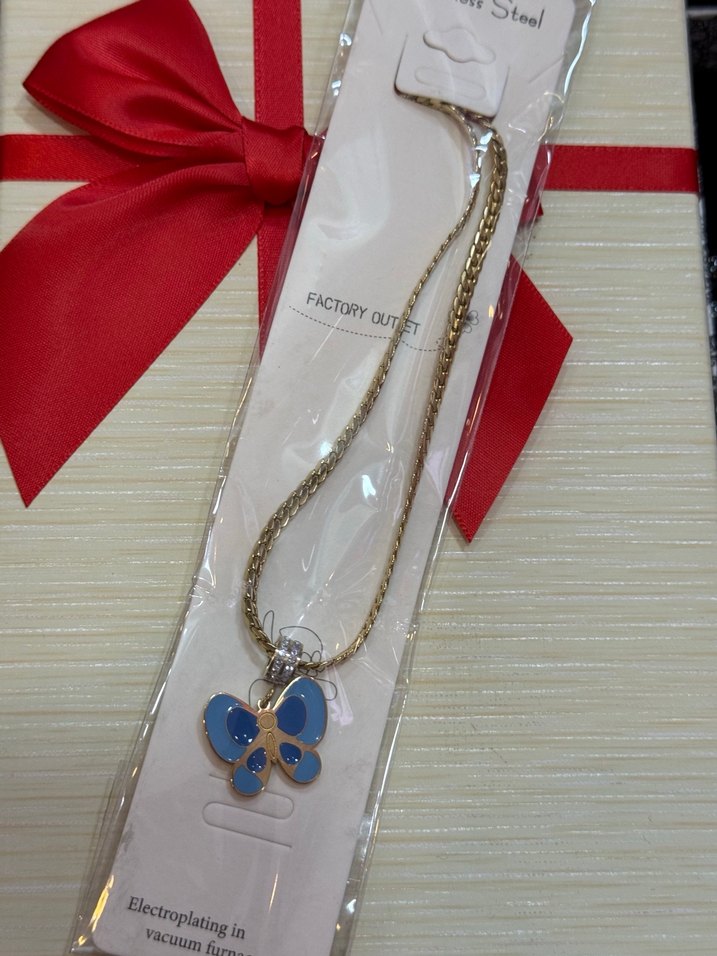 Kısa zincirli bu kolye, renkli kelebek figürü ve baskılı desenle minimalist ve bohem tarz sunar. Günlük kullanıma uygundur. Electroplating ile parlak yüzey sağlanmıştır.