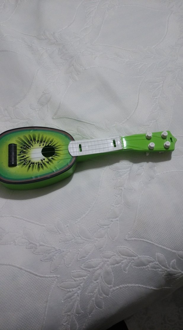 Kivi desenli, dört akort burgulu renkli yeşil müzik oyuncağı. Çocuklar için eğlenceli bir enstrüman.