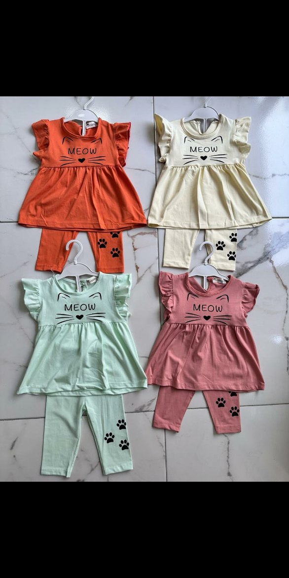 Kısa kollu, ve baskılı detaylı renkli kız çocuk takımları. çeşitli renk seçenekleriyle sunulur.