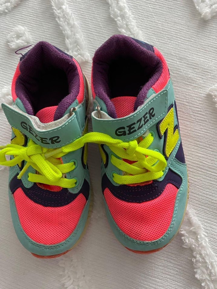 Renkli, baskılı desenli kız çocuk spor ayakkabısı, velcro ve bağcık detaylı, kauçuk tabanlı, trend sokak giyimine uygun.