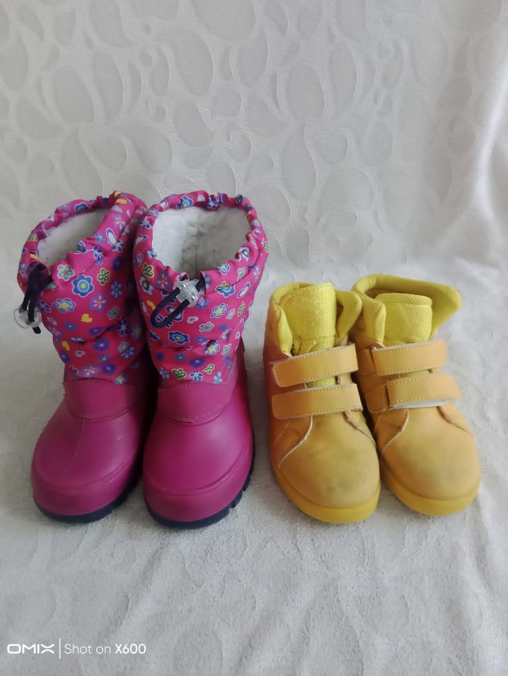 Renkli pembe kauçuk kız çocukları botu, Velcro kapanışlı ve çiçekli üst kısmıyla dikkat çekici bir tasarıma sahip biri 29 biri 30 numara dır