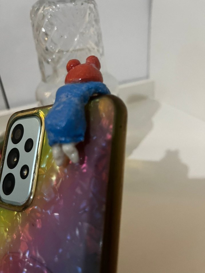 Telefonunuzun kenarına tutunan küçük kız figürlü renkli telefon tutucu.