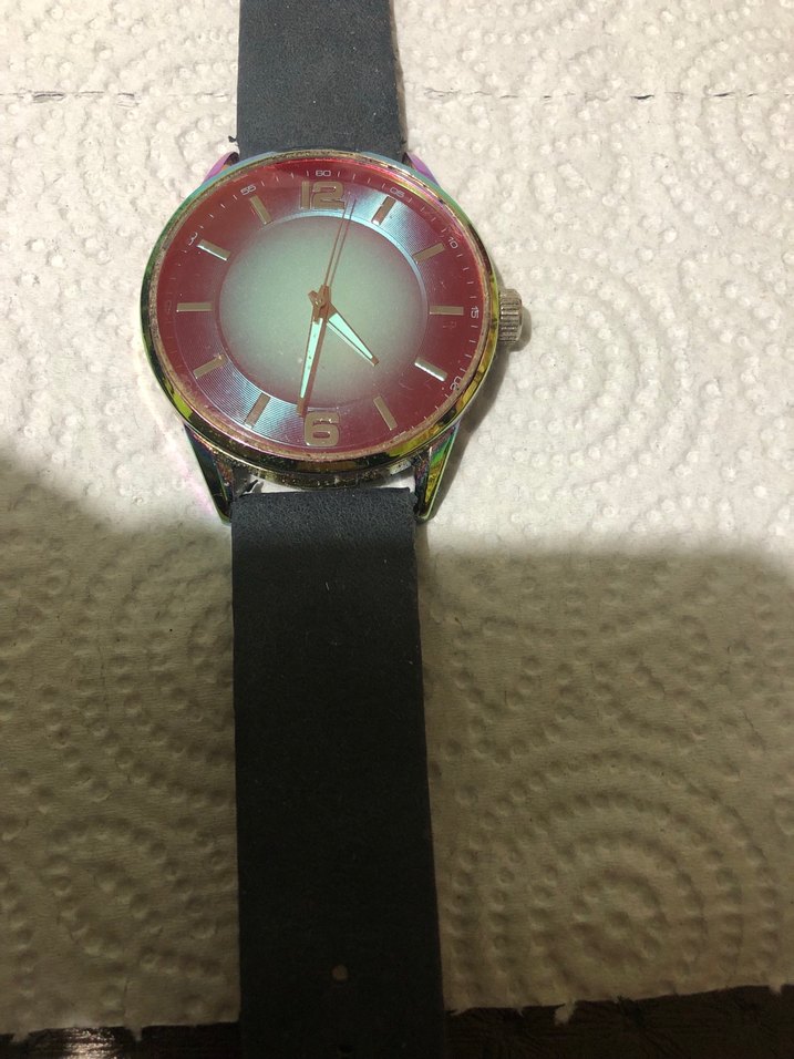 Tokalı siyah kayışa sahip renkli kol saati, minimal kadran tasarımı ile dikkat çekiyor. Çok renkli yüzü ile trend günlük stile uyum sağlar. ⌚