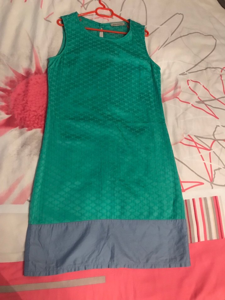 Kolsuz, fitted kesim kısa elbise. Sentetik kumaştan, fermuarlı ve renkli bohem tarzda. Günlük kullanıma uygun.
