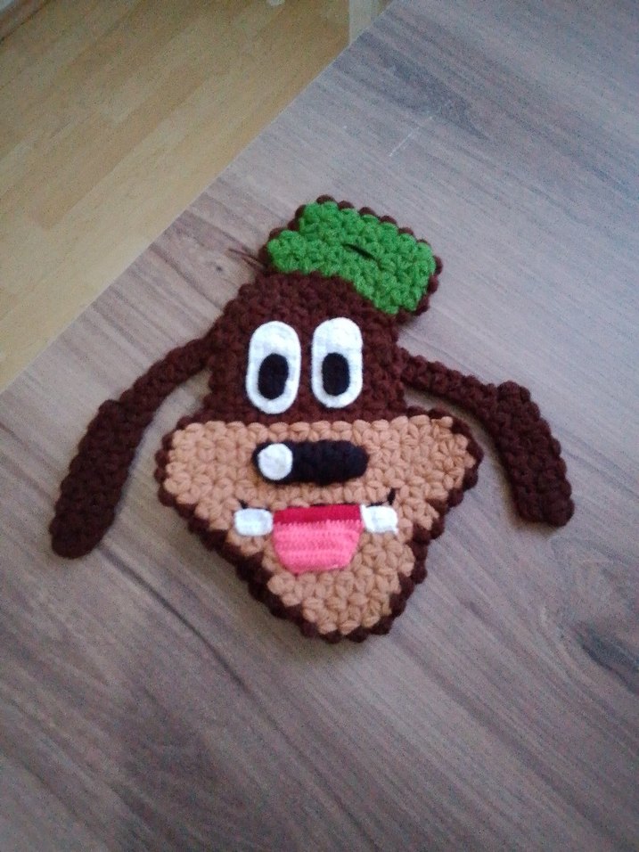 Renkli, örgü malzemeden yapılmış karikatür yüzü şeklinde köpekcik modelli bebek ve çocuk lifleri