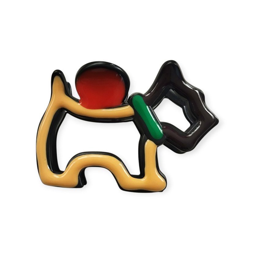 Yaklaşık 7,5 cm genişliğinde, koyu tonlarda çok renkli köpek figürlü aksesuar saç tokası #saçtokası#aksesuar#toka