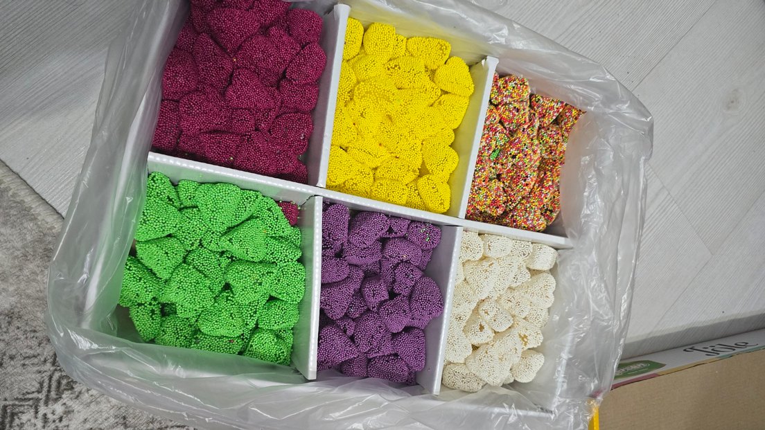 Farklı şekil ve boyutlarda, köpük boncuklarla yapılmış renkli pop kültür figürleri. Canlı renk seçenekleri mevcuttur.