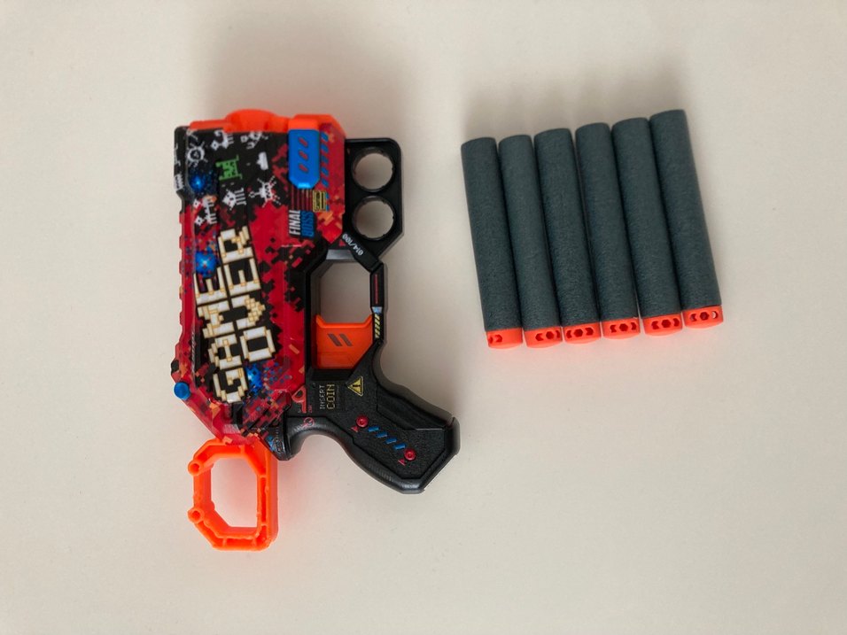 Yumuşak köpük mermilerle kullanılan renkli oyuncak tabanca. Canlı tasarımı ve kolay tutma sapı bulunur. Eğlenceli oyunlar için uygundur.