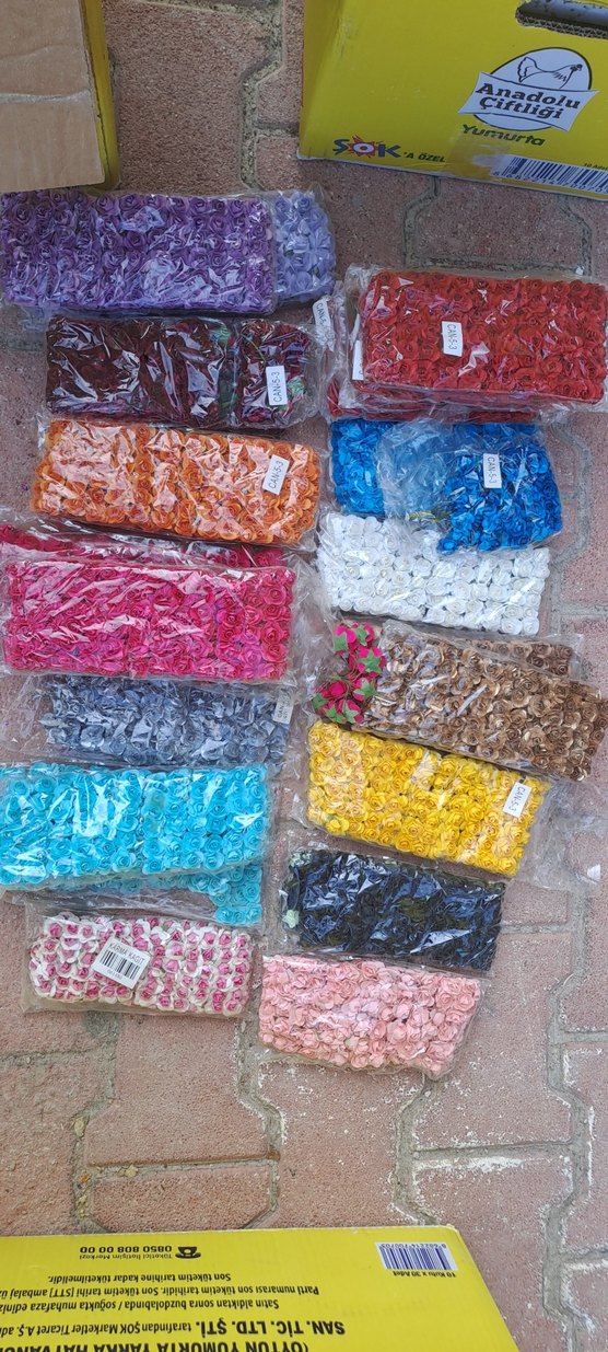 Birçok renkte küçük kagıt gül paketleri, el işleri ve dekorasyon için uygundur. 10 paket karışık renkli kargolanacaktır.