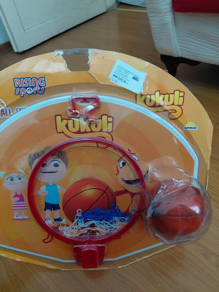 Renkli Kukuli basketbol seti, iç mekan kullanımı için çember ve küçük top içerir. Canlı turuncu ve kırmızı renklere sahiptir. YENİ TOYSHOP dan alındı diğer modelleride profilimde mevcut en:41 cm boy: 33 cm