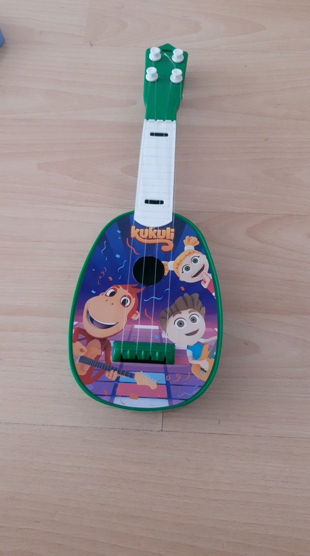 Kukuli karakterli, renkli ve küçük telli müzik oyuncağıdır.