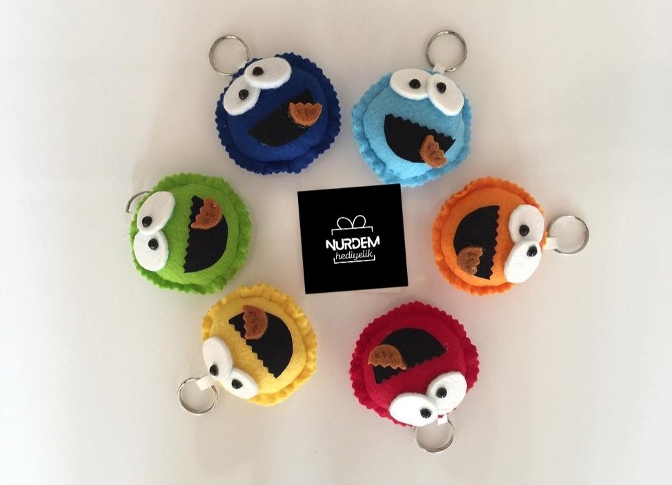 Renkli, dolgulu ve şirin kurabiye canavarı temalı anahtarlıklar, rahat ve eğlenceli bir görünüm sunar. İstenilen renklerde hazırlanır. 20 adet ve üzeri için sipariş alınır.