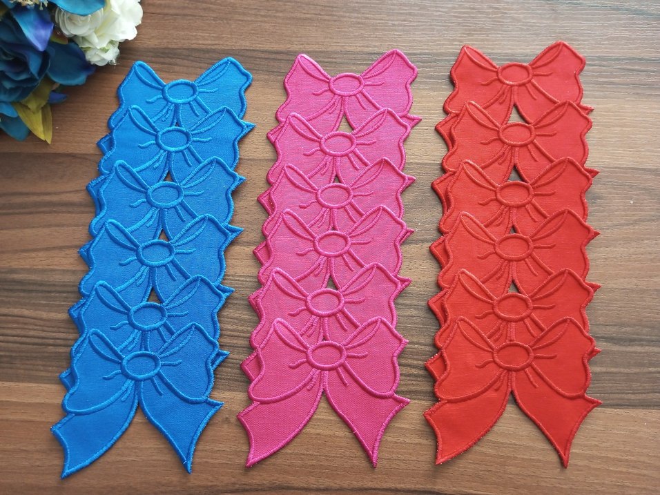 Mavi, pembe ve kırmızı renklerde nakışlı kurdele süslemeler Taşsız Kahve Sunum Peçetesi 6 adet 220 TL dir arkası çok temizdir fotoğrafını ekledim
