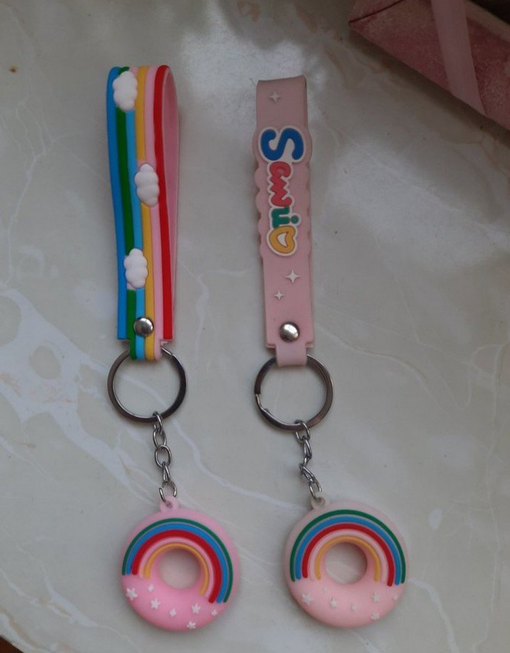 Minimalist ve retro tarzlara uygun, kurdeleli ve gökkuşağı desenli renkli anahtarlıklar. 2 adet fiyatıdır