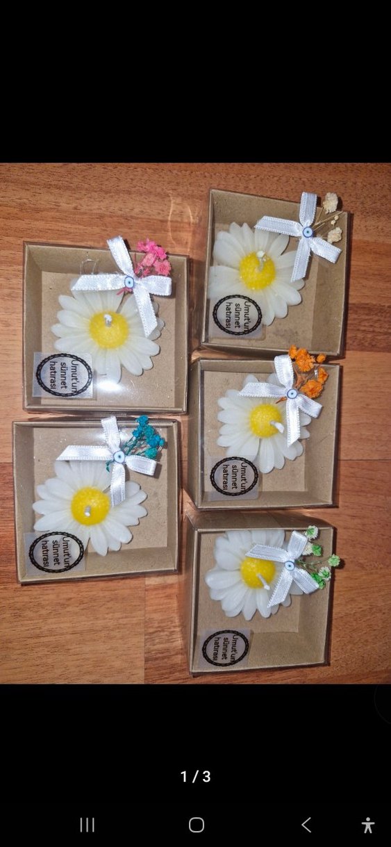 Renkli Kurdeleli Papatya Şeklinde Mum