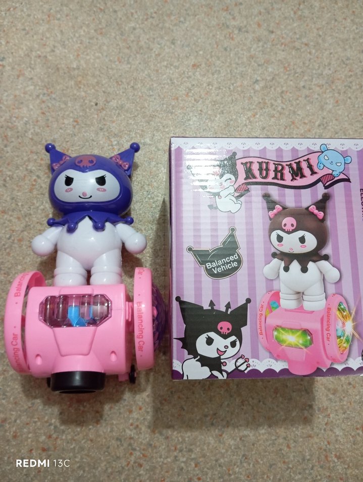 Mor kıyafetli karakter ve pembe tabanlı renkli Kurmi oyuncak figür. Dengeli araç özelliği ve kutusunda mevcuttur.