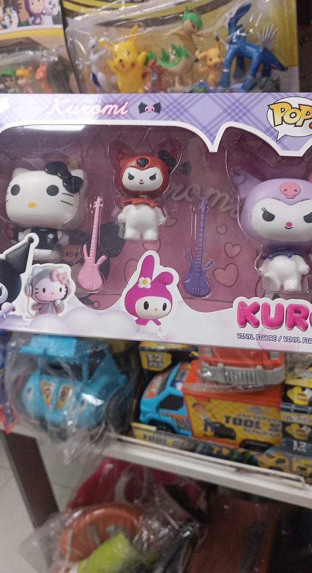 KUROMİ serisine ait pembe ve renkli küçük gitar aksesuarlarıyla birlikte figür seti.