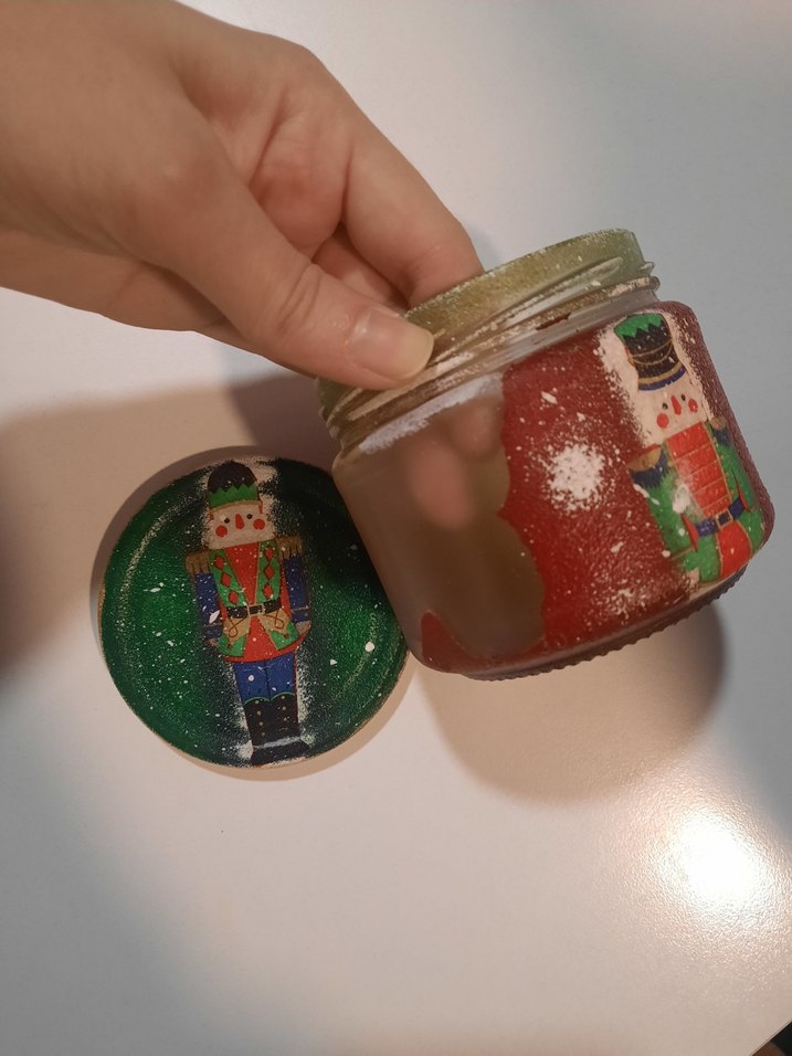Renkli kurşun asker desenli cam kavanoz ve kapağından oluşan mumluk, mekana şık bir hava katıyor. ️