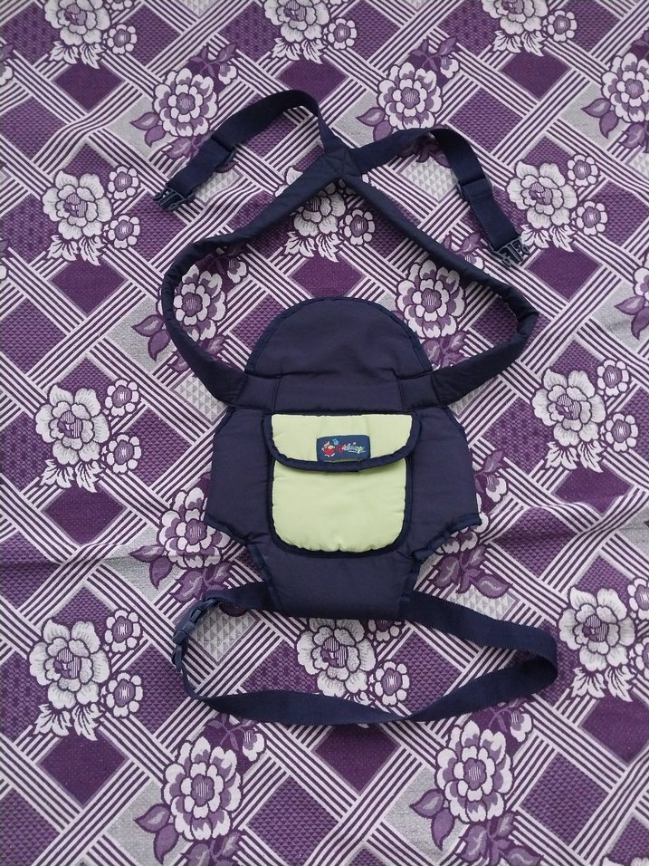Renkli bebek taşıyıcı, ayarlanabilir askılar ve küçük ön cepli tasarıma sahiptir. Rahat taşıma sağlar.