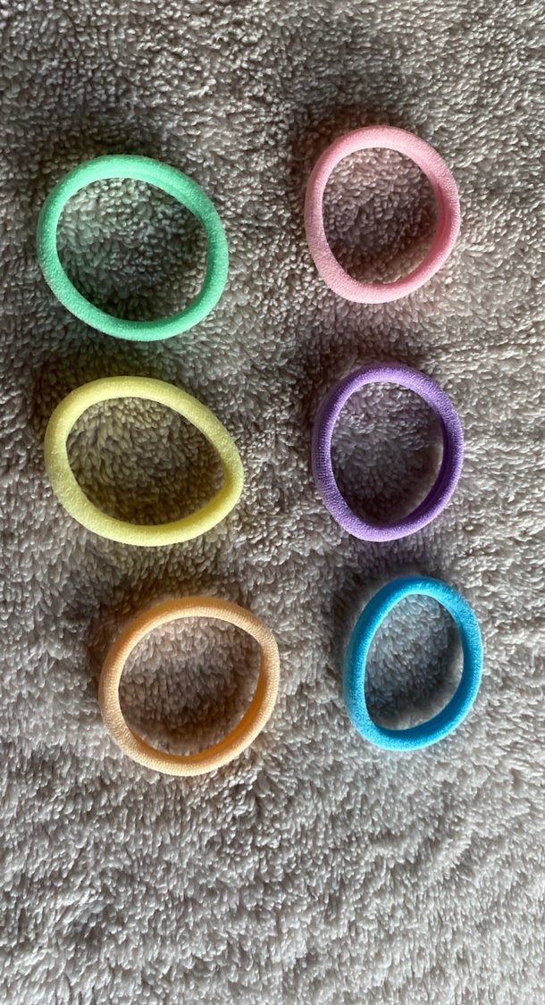 Bohem ve retro tarzda, pastel renklerde lastikli çocuk saç tokaları seti.
