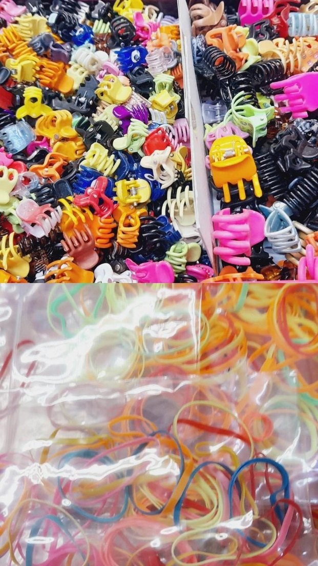 Çoklu topluca çocuklar için renkli ince lastik tokalar ve küçük kelebek tokalar topluca satiliktir