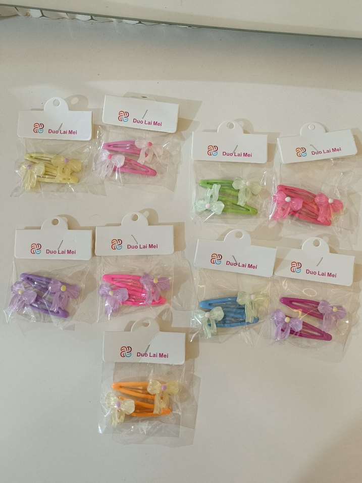 Çocuklar için lastikli, renkli ve bağlama desenli basit tasarımlı saç tokaları seti. Canlı renk seçenekleriyle günlük kullanıma uygundur.