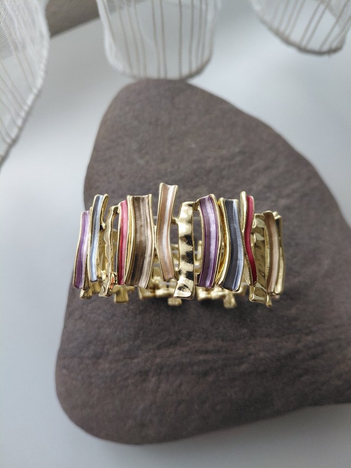 Renkli, soyut desenli ve tokalı kadın bileklik, çağdaş ve bohem tarzları günlük kullanım için birleştirir.