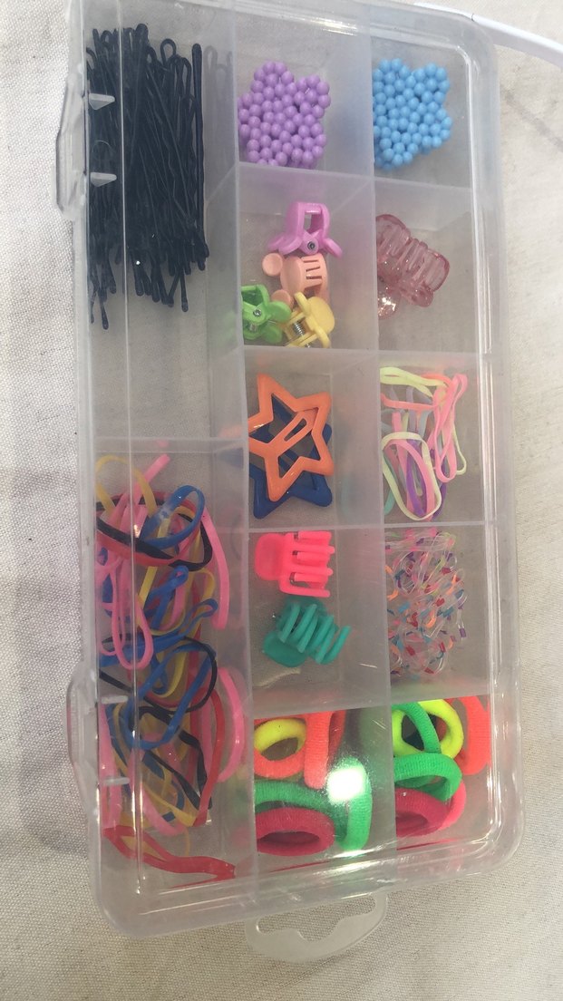 Renkli lastikli saç tokaları ve farklı tarzlarda tokalar içeren set, modaya uygun çocuklar için ideal. Toka kutuları seç al 150 TL