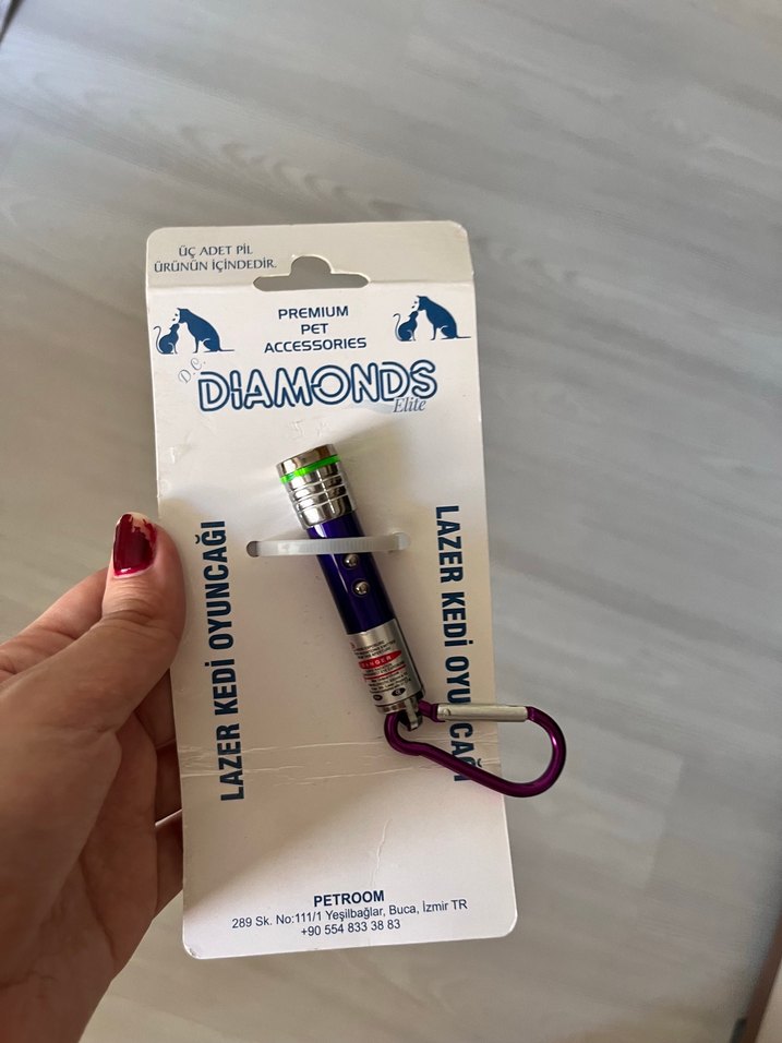 Renkli lazer ışıklı kedi oyuncağı, üç pil ve kolay kullanım için karabina klipsi içerir. Kedinizin oyun saatleri için uygundur.