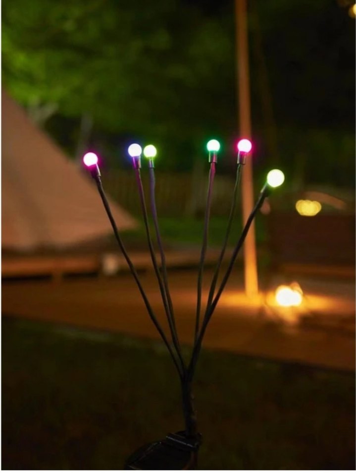 Bu dekoratif lamba, esnek saplarda birden fazla renkli LED ışık içerir ve karanlık ortamlarda canlı bir atmosfer oluşturur. Güneş enerjilidir