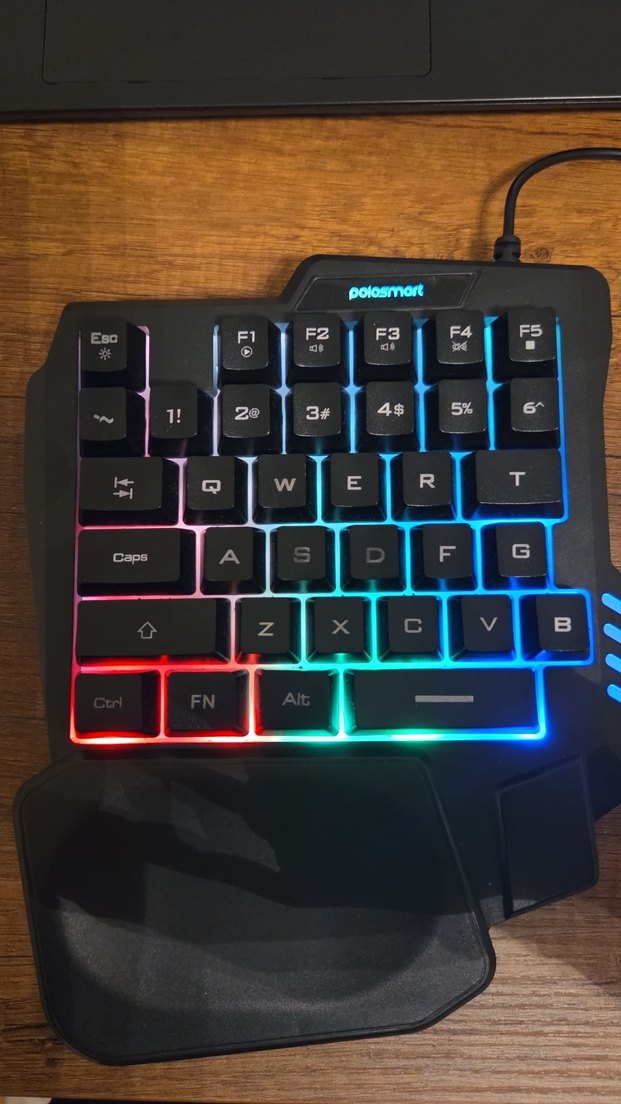 Çok renkli LED ışıklı, FN ve Caps Lock tuşları vurgulanmış kompakt dark mini klavye. Oyun veya yazı için uygun, canlı ışık efektleriyle.
