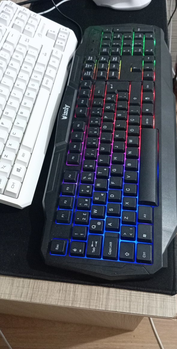 izoly marka Her tuşu renkli LED ışıklarla aydınlatılmış siyah kablolu oyuncu klavyesi.