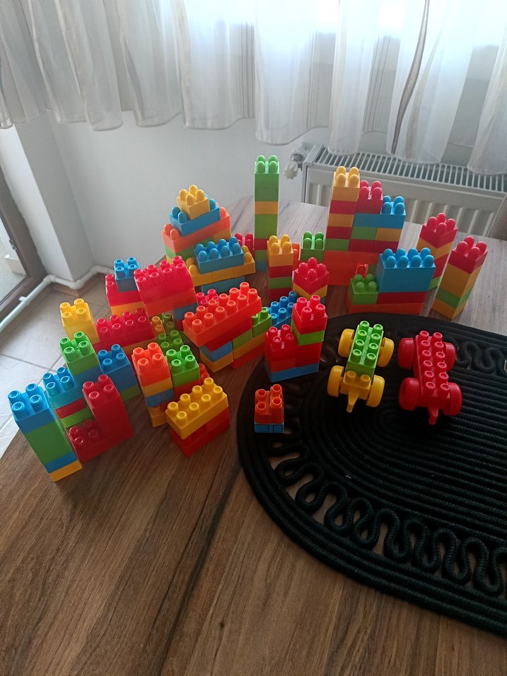 Çeşitli şekil ve boyutlarda renkli Lego blokları, yaratıcı yapılar için uygundur. Yaklaşık 120 adet ve iki arabadan oluşuyor.