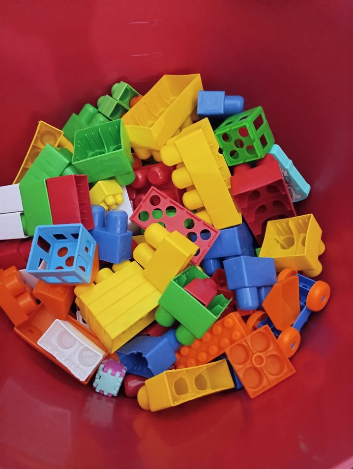 Çeşitli şekil ve boyutlarda renkli Lego blokları seti, yaratıcı oyun için uygundur.