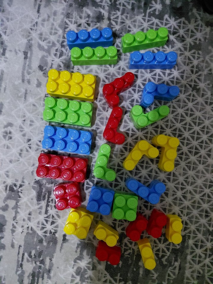 Çeşitli boyut ve şekillerde renkli Lego blokları, yaratıcı yapılar için uygundur.