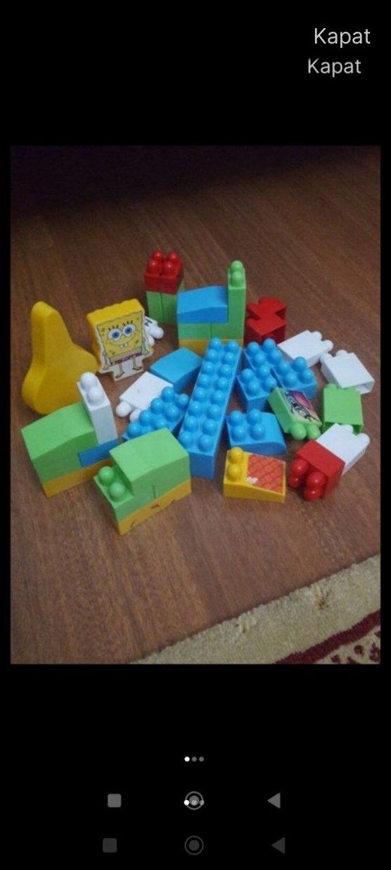 Renkli Lego blokları ve Sünger Bob figürü içeren yaratıcı oyun için parçalar.
